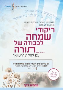 מדרשת דניאלי שמחה להזמין את ציבור הנשים לריקודי שמחה בצאת שמחת תורה, מוצאי שמחת תורה,